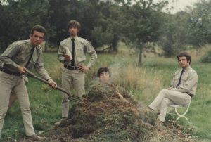 Pierre was again lead singer but Bob Moore played lead guitar. Paul Bedwell was on bass and Julian Ferrari played drums. Julian was also in a group called The A-Jaes but Bob and Paul had not played in any bands before. They called themselves The Jeeps. In accordance with this, they adopted a group uniform, which can be seen in this photograph (described by Pierre as “very silly”), which was taken in August 1966.
