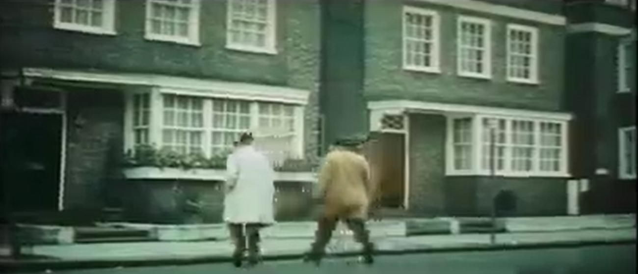 Because the film, which is set in London, was filmed on both actual London locations and in Madrid studio mock-ups, it presents a very odd hybrid view of London, which adds to the surreal look of the whole film, as in some scenes London is drenched in fog, accompanied by Gianni Ferrio’s unsettling score, and populated by helmet-wearing beat bobbies on foot who blow their whistles for assistance.