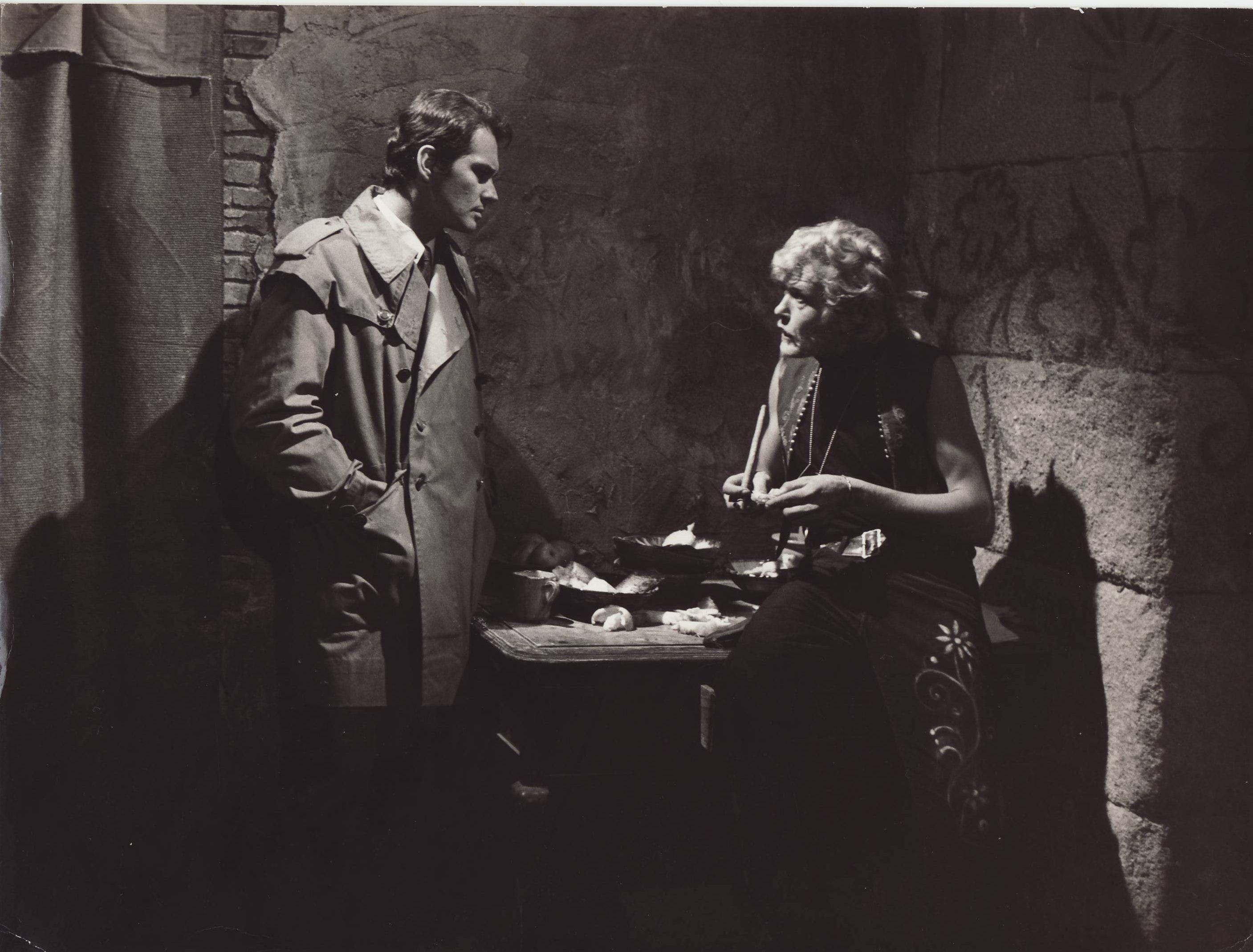 and as Murder By Music. Although there is a conventional romance between the leading actors Halsey and Marilu Tolo as Helen, there is (for a 1969 film) an unusual allusion to the gay scene when Halsey is accosted (“Psstt…”) by a gay man wearing a chain outside the club, for no narrative reason except to portray The Mouse Hole clientele as depraved. More subtle is the placing of a lesbian couple as Richard enters The Mouse Hole, one with a butch haircut and a cigarette holder.