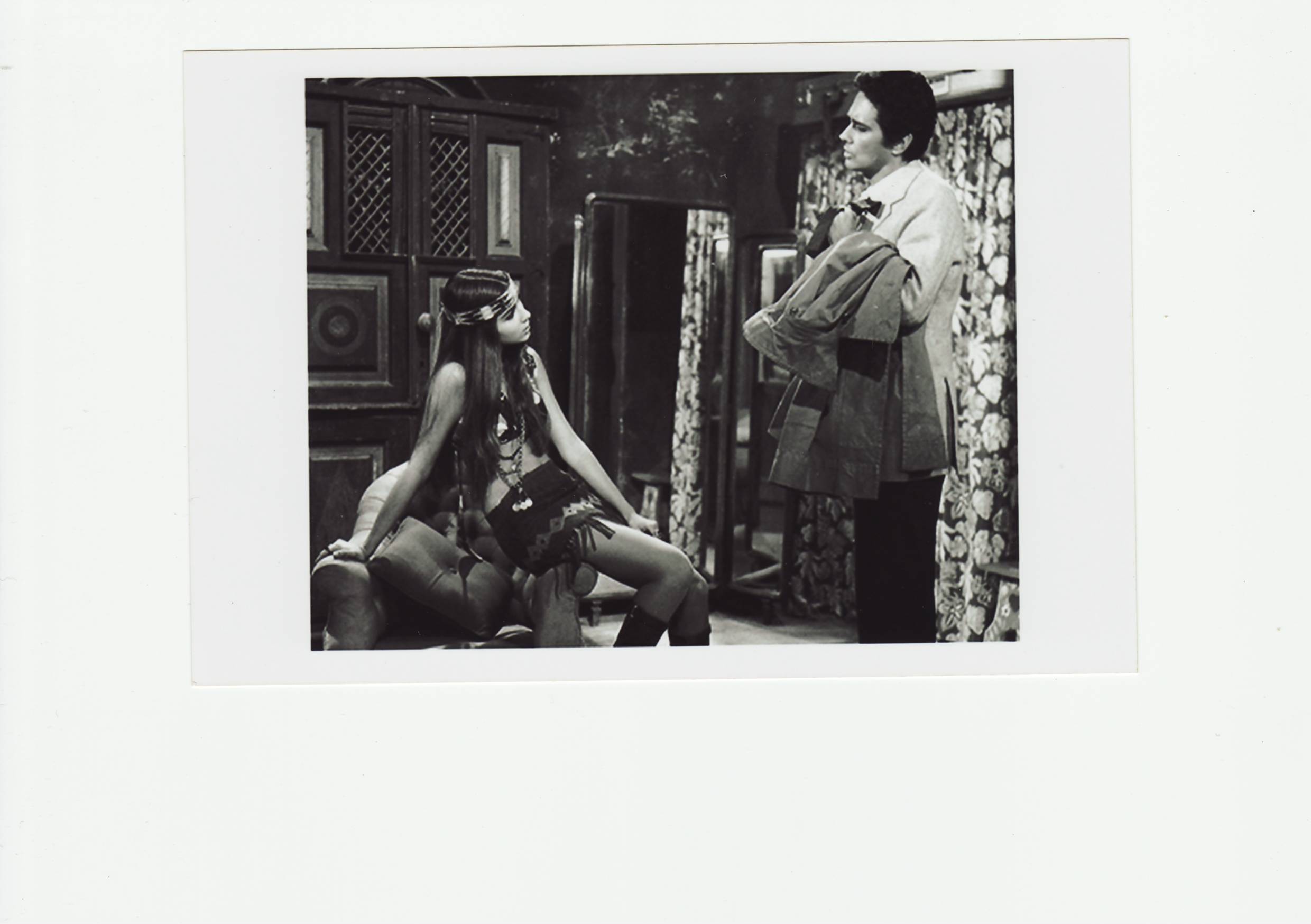 Harry has the LP of The Sound Of Music beside the turntable: Julie Andrews would never be played in a Soho psychedelic club of the era, far too uncool. Harry is playing a Reprise LP, but not one of the Reprise LP acts like The Electric Prunes who were “hep” at the time, but a kind of jazzy funk. (Reprise was started by Brett Halsey’s social friend Frank Sinatra.) And as Brian Horowitz of ‘Trash Palace’ has pointed out in a comment on the film, it is hilarious that the dancing in the club has to stop while Harry takes the LP off the turntable to turn it over to the other side. (Brett Halsey thought that Buchs was probably too old to know what went on in discos, he was in his 40s when he made the film. Nevertheless, he said he found Buchs “very talented and dedicated”.)